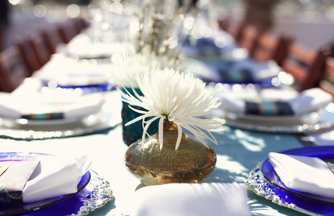 A bit about the inspiration behind the day, Prince Charming came into mind when we thought about the special groom-to-be, so only a Royal Affair was appropriate for this luxurious bridal shower. Inspired by the backdrop of the gorgeous ocean view, shades of blues ranging from cobalt and aqua to teal were blended with warm amber glassware, silver and gold for a truly opulent effect.